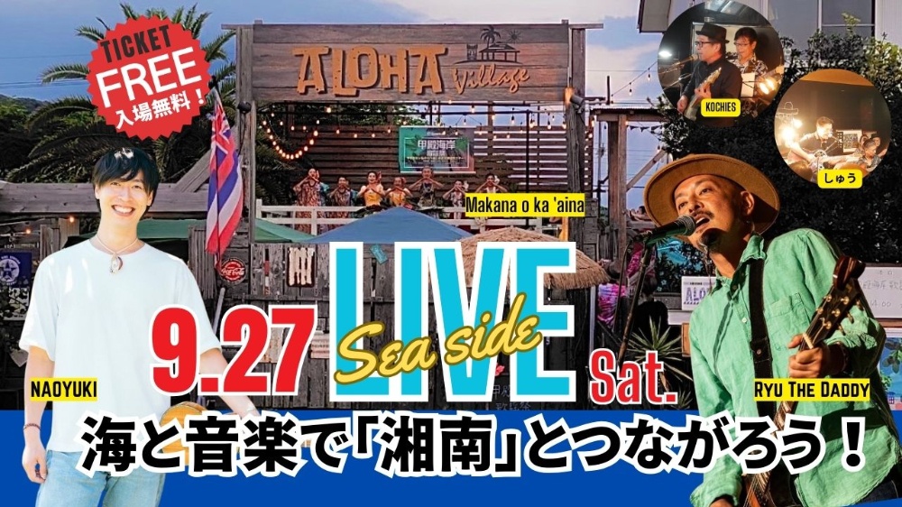 いよいよ今週末!海と音楽で「湘南」とつながろう!SEA SIDE LIVEがアロハヴィレッジで開催されます!入場無料!週末はアロハヴィレッジで湘南の風を感じよう!くじ引きで当たる湘南のグッズもたくさん入荷!お楽しみに!イベントの詳細はhttps://www.alohavillage.net/p/81/