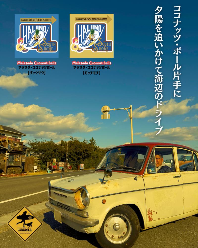 ラニアケアビーチストアお馴染みの“ザックザク”と“モッチモチ ”食感! 『マラサダ・ココナッツボール』ハワイの定番おやつ『マラサダ』をイメージした丸いフォルムでどこか懐かしい感じのする口当たりに仕上がりました!ココナッツボール片手に夕陽を追いかけて海辺のドライブ海岸線をドライブするなら 『マラサダ・ココナッツボール』ココナッツ風味がハワイアン珈琲に良く合います!