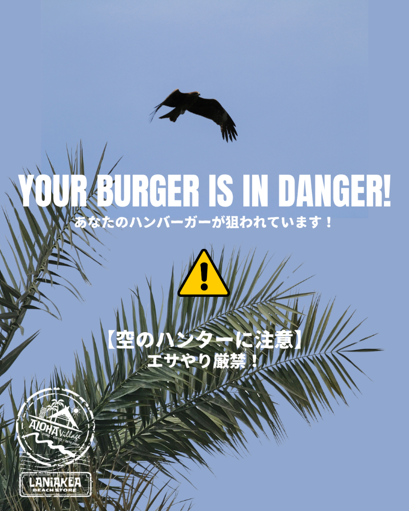 最近、ALOHAVillageのヤシの木上空を、悠々と舞うトビの姿をよく見かけます。