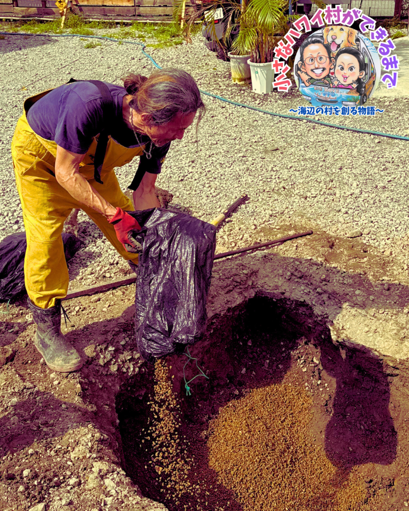 先日、僕が必死に掘っていたこの大きな穴が、いよいよ「命」を宿す準備を整えました。